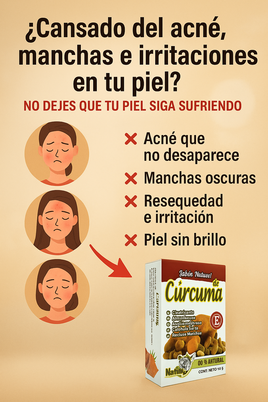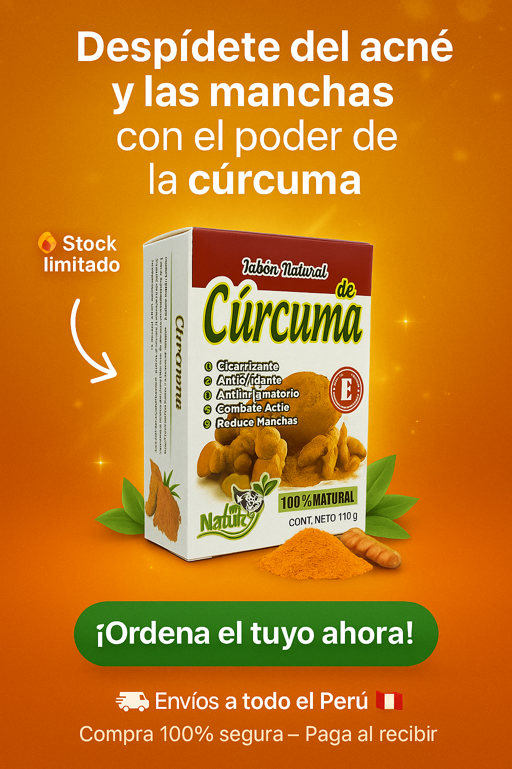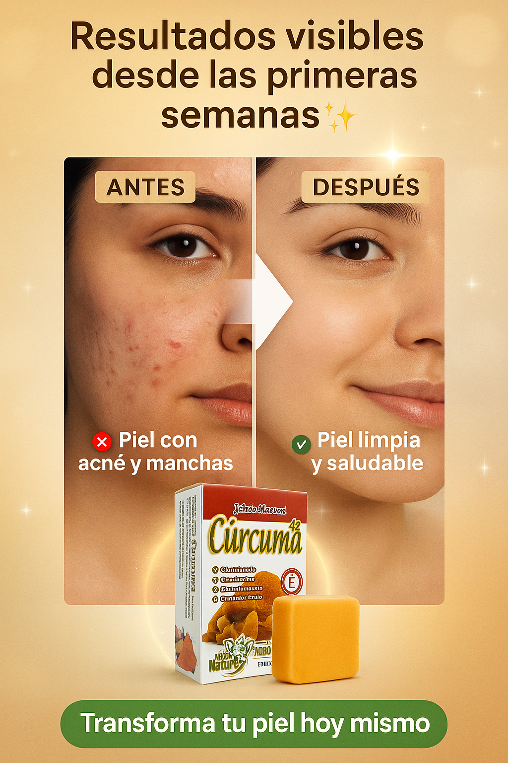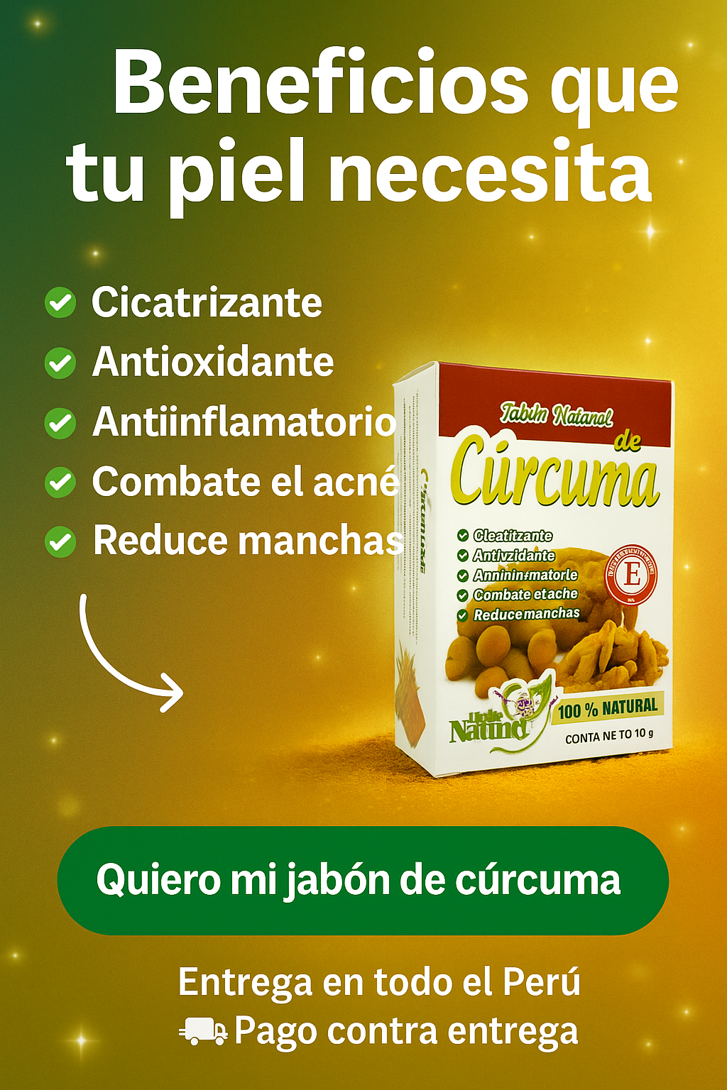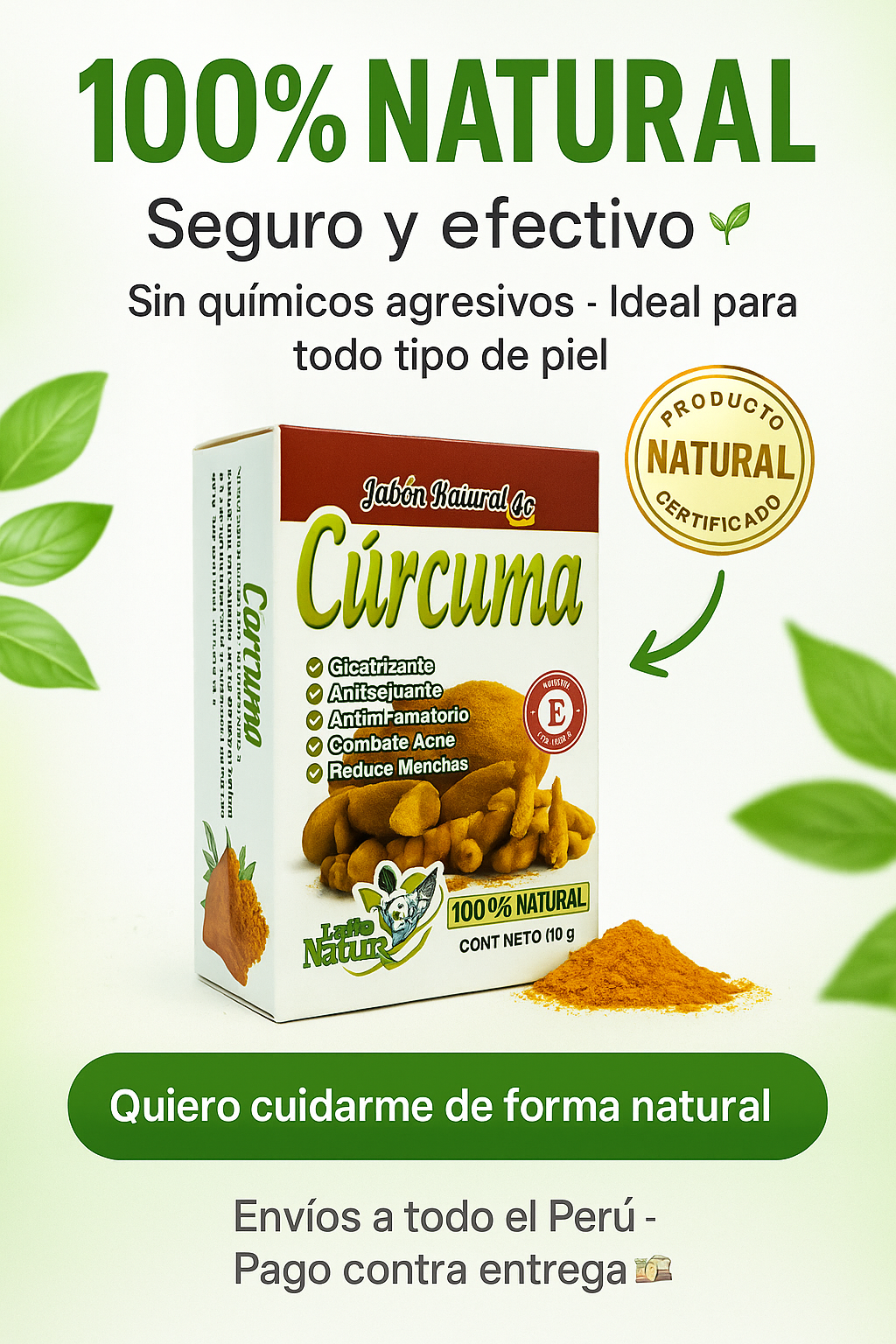 La fórmula natural combate bacterias y reduce brotes. La cúrcuma ha sido estudiada por sus propiedades antiinflamatorias, respaldada por la medicina natural.
